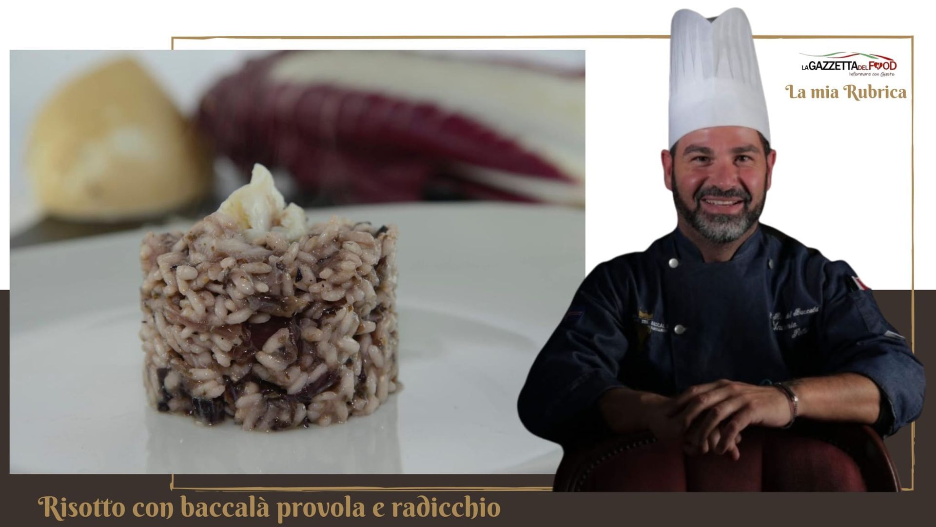 Rubrica di Antonio Peluso Chef Scellato Quando penso al comfort food che più rappresenta la mia cucina, immagino sempre un risotto. È un piatto che mi permette di raccontare una storia, di unire territori, profumi e consistenze. Oggi voglio portarvi con me in un viaggio che parte dalla tradizione veneta, attraversa il mare e arriva dritto alla mia idea di cucina contemporanea: il risotto con baccalà, provola affumicata e radicchio tardivo. Questo piatto nasce dal desiderio di accostare sapori decisi ma armoniosi. Il baccalà, con la sua sapidità gentile, incontra la nota leggermente amarognola del radicchio tardivo, un prodotto che amo per la sua eleganza. A legare tutto è la provola affumicata, che aggiunge rotondità e profondità grazie al suo profumo persistente. Ne deriva un risotto cremoso, materico, che avvolge il palato senza appesantire. Ingredienti per 4 persone • 400 g di baccalà già spinato e dissalato • 360 g di riso Carnaroli • 100 g di provola affumicata • 2 radicchi tardivi • 40 g di Parmigiano Reggiano grattugiato • 1 cipolla • Olio EVO q.b. • Burro q.b. • Brodo vegetale q.b. • Sale q.b. • Pepe q.b. Difficoltà: 🍤 Tempo: 🕒 1h Procedimento Inizio sempre stufando dolcemente una cipolla in casseruola con un filo di buon olio extravergine: la base profumata che accoglierà il resto degli ingredienti. Quando la cipolla è trasparente, aggiungo il baccalà tagliato a dadini e il radicchio a striscioline, lasciandoli insaporire lentamente. Copro con brodo vegetale e lascio cuocere a fuoco basso per circa 30 minuti; è il tempo necessario perché il baccalà si ammorbidisca e il radicchio rilasci il suo colore e il suo carattere. In una casseruola a parte, tosto il riso Carnaroli con una noce di burro: un passaggio imprescindibile per ottenere un chicco integro e una cottura perfetta. Unisco poi la mia salsa di baccalà e radicchio, continuando la cottura con l’aggiunta graduale di brodo caldo. Quando il riso è al punto giusto, arriva il momento che preferisco: la mantecatura. Aggiungo provola affumicata, Parmigiano Reggiano e un ultimo tocco di burro. Il risotto diventa lucido, cremoso, avvolgente. Per completare il piatto, decoro con radicchio tagliato alla julienne, che dona freschezza e un contrasto cromatico elegante. Questo è un risotto che parla di me, della mia cucina e della mia idea di gusto: tradizione, identità e creatività, fusi in un piatto che amo prepararvi e raccontarvi. Buon viaggio tra i miei sapori. — Chef Antonio Peluso