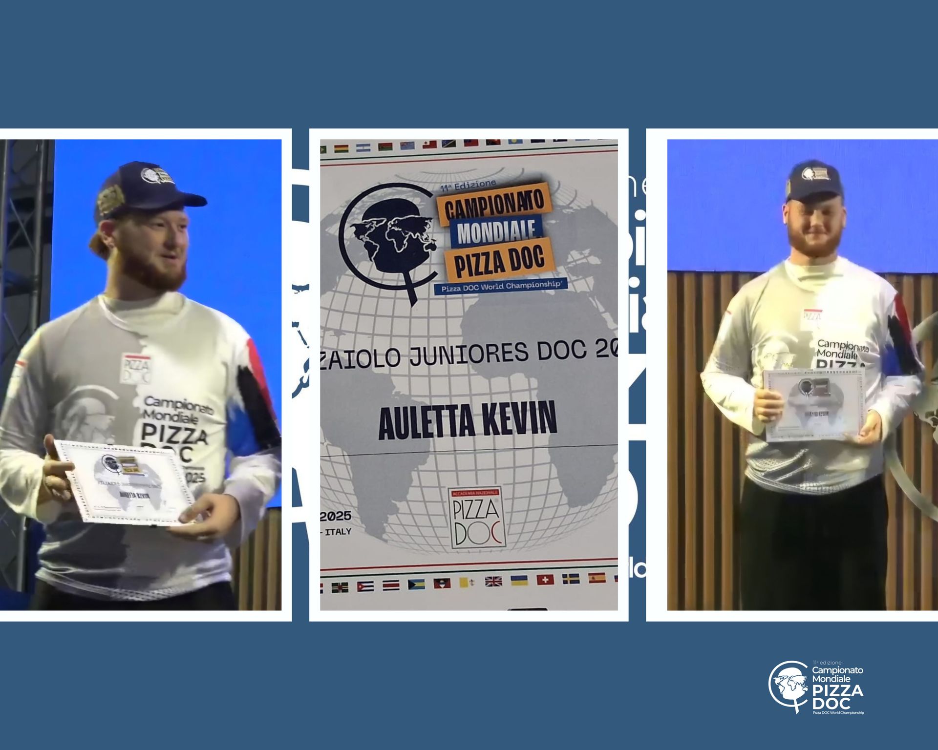 Auletta, 21 anni, è già considerato un giovane talento nel mondo della pizza, capace di sorprendere per la sua maturità e professionalità, che spesso fanno apparire il suo percorso molto più avanzato rispetto alla sua età. Cresciuto nel locale di famiglia, Kevin ha scoperto fin da bambino la passione per l’arte della pizza, imparando il valore del lavoro, della dedizione e dell’amore per ciò che si fa. Nonostante la giovane età, Kevin dimostra una determinazione e una voglia di mettersi in gioco che vanno ben oltre i suoi 21 anni. La sua curiosità lo spinge costantemente ad aggiornarsi, a sperimentare nuove tecniche e sapori, e a migliorarsi ogni giorno, confermando una grande ambizione e un forte spirito di crescita. Il suo percorso professionale lo ha portato a vivere e lavorare in contesti internazionali, da Malta a Parigi, fino alla splendida Costa Cilentana. Ogni esperienza ha arricchito le sue competenze, ampliato la sua visione della cucina e rafforzato la sua creatività, rendendolo un pizzaiolo capace di coniugare tradizione e innovazione. Oltre alla pizza, Kevin coltiva una forte passione per i viaggi e per la moda, che riflettono la sua personalità eclettica e la voglia di esprimersi in modi diversi, con stile e autenticità. La famiglia resta il suo punto di riferimento più importante, fonte di affetti sinceri e supporto, che hanno contribuito a costruire il carattere determinato, curioso e creativo che lo distingue. Grazie alla sua esperienza, al talento e alla costante voglia di migliorarsi, Kevin Auletta si è affermato come Pizzaiolo Juniores DOC 2025 al prestigioso Campionato Mondiale Pizza DOC, confermando il suo ruolo emergente e la promessa di un futuro brillante nel panorama della gastronomia internazionale.