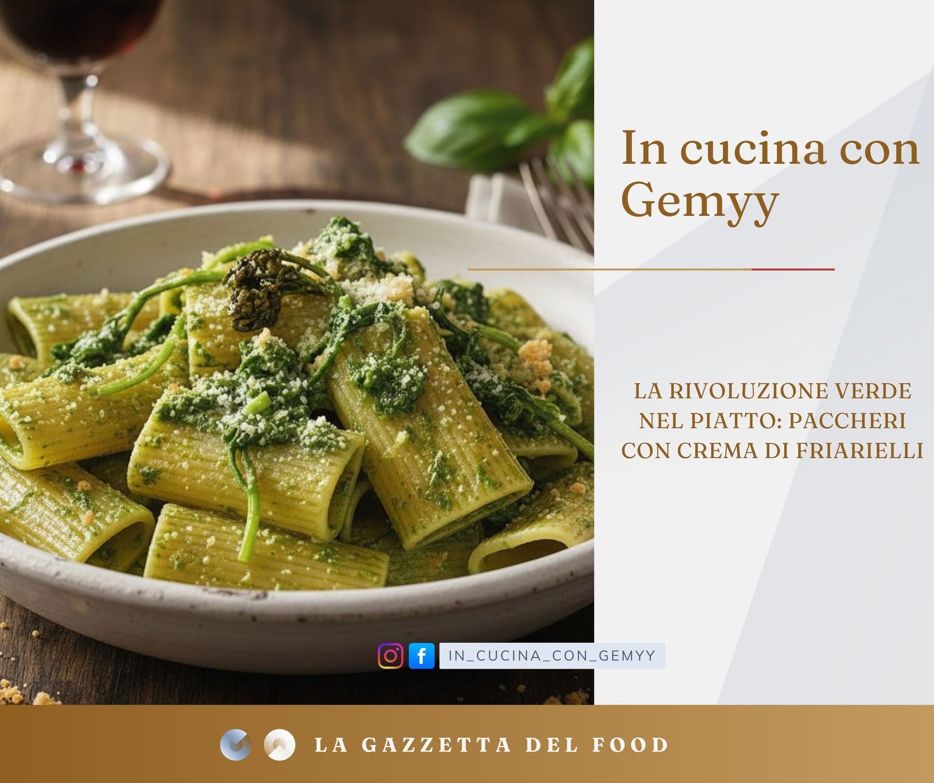 La magia di questo piatto parte dalla pasta. Per me non esiste alternativa ai Paccheri di Gragnano I.G.P., e per una tavolata generosa ne utilizzo 700 grammi. La loro forma imponente, nata per “schiaffeggiare” (paccarià) il condimento, unita alla trafilatura al bronzo, offre una porosità unica. È proprio questa rugosità, frutto di un processo artigianale, che cattura il sugo e lo trattiene in modo impareggiabile, trasformando ogni boccone in un’esperienza autentica. Accanto alla pasta, i protagonisti verdi: i friarielli, le tipiche cime di rapa campane. Un tempo considerati un contorno povero, oggi sono diventati uno dei simboli più rappresentativi della cucina regionale. Storia e Tradizione: l’Origine di un “Matrimonio” Rustico L’unione tra friarielli e pasta è l’evoluzione naturale di un binomio nato nelle cucine contadine: friarielli e salsiccia, piatto robusto e sostanzioso dei pranzi dei lavoratori. Solo più tardi le trattorie napoletane hanno trasformato questo contorno in un primo sontuoso, scegliendo il Pacchero come compagno ideale. Il mio tocco personale è la crema di friarielli: un ponte tra tradizione e modernità. Frullarne una parte con l’acqua di cottura crea una vellutata intensa e avvolgente, che si lega perfettamente all’amido dei paccheri trafilati al bronzo, valorizzando quel retrogusto piacevolmente amaro che tanto amo. La Ricetta: Ingredienti per 5-6 persone 700 g di Paccheri di Gragnano I.G.P. 1 kg di friarielli freschi Olio extravergine d’oliva 3 spicchi d’aglio Peperoncino fresco Sale grosso Parmigiano q.b. Provola affumicata a cubetti (facoltativa) Preparazione Pulizia e soffritto: Pulite i friarielli. In una padella ampia scaldate abbondante Olio EVO con aglio e peperoncino: è il cuore del sapore. Cottura dei friarielli: Unite i friarielli al soffritto, salate e cuocete finché non risultano teneri. Conservate un mestolo dell’acqua di cottura della pasta. La crema: Frullate metà dei friarielli cotti con un filo d’olio e un po’ di acqua di cottura, fino a ottenere una crema liscia e vellutata. Riunite tutto in padella. Mantecatura: Lessate i paccheri in acqua salata, scolateli al dente e trasferiteli nella padella. Mantecate fuori dal fuoco fino a ottenere un condimento cremoso. Per un tocco più goloso, unite qualche cubetto di provola affumicata: farà da contrappunto perfetto all’amaro dei friarielli. Nota di presentazione: All’impiattamento aggiungo sempre qualche ciuffo di friarielli interi. Un dettaglio semplice che esalta freschezza e vivacità cromatica. Buon appetito!