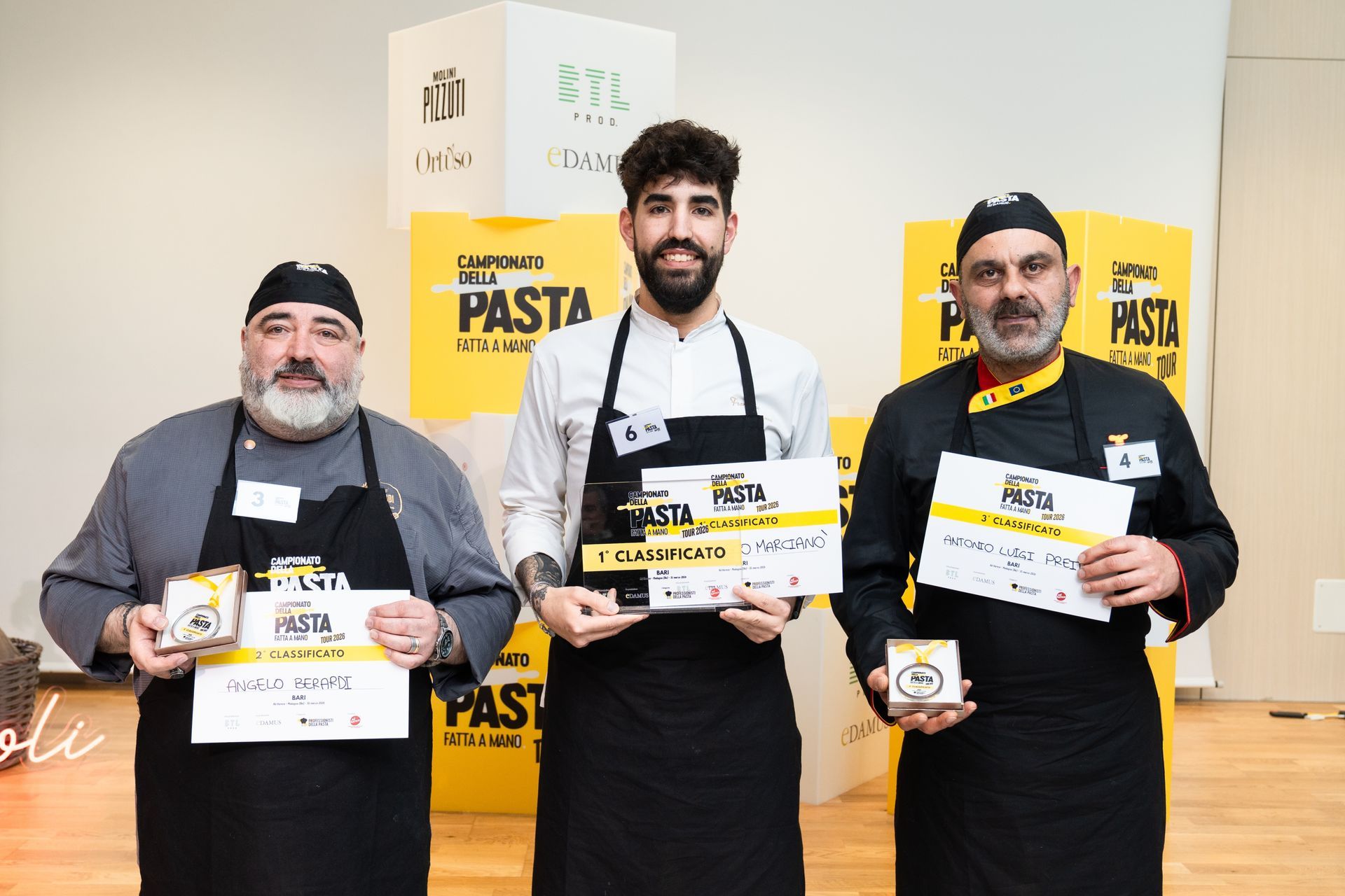 B ari, 31 marzo 2026 – Un podio che racconta tre modi diversi – e ugualmente potenti – di interpretare la pasta fatta a mano. Francesco Marcianò conquista il primo posto alla tappa barese del Campionato della Pasta Fatta a Mano 2026, ma accanto a lui emergono con forza le prove di Angelo Berardi e Antonio Preite, capaci di lasciare un segno autentico e duraturo. Il successo di Marcianò nasce da un’idea chiara e profondamente personale. Il suo “Coniglio in piramide” è un piatto che parte dalla memoria familiare e si trasforma in una costruzione gastronomica contemporanea. La forma, studiata e riconoscibile, racchiude un ripieno che parla di casa, di gesti tramandati, ma anche di tecnica consapevole. Il coniglio alla cacciatora diventa così essenza, concentrato di gusto, sostenuto da un fondo capace di amplificare ogni sfumatura. È una cucina che non rincorre l’effetto, ma lo genera attraverso coerenza e identità. Ma se il primo posto convince, è il secondo gradino del podio a sorprendere per profondità e visione. Angelo Berardi porta in gara molto più di un piatto: porta un percorso. Il suo lavoro è il punto d’incontro tra Sud e Nord, tra radici pugliesi e maturazione professionale in Alto Adige. I cappelletti senza glutine con cervo e mirtilli rappresentano una sfida doppia, tecnica e culturale. Da un lato, la scelta del senza glutine, affrontata con rigore e precisione, senza mai far percepire una mancanza, anzi trasformandola in valore. Dall’altro, l’equilibrio dei sapori: la forza del cervo, intensa e selvatica, viene domata e accompagnata dalla nota gentile e leggermente acida del mirtillo. Nulla è lasciato al caso. Ogni elemento dialoga, ogni boccone evolve. È una cucina pensata, stratificata, che non cerca scorciatoie ma costruisce un’esperienza completa. Berardi dimostra una maturità rara: la capacità di contaminare senza confondere, di innovare senza rompere il legame con la tradizione. Il suo secondo posto ha il sapore di una dichiarazione forte, quasi un anticipo di ciò che potrebbe accadere in finale. E poi c’è Antonio Preite, terzo classificato , che conquista con una forza completamente diversa, più istintiva ma altrettanto incisiva. Il suo “Gallo nel cortile” è un piatto che non ha bisogno di spiegazioni complesse: arriva diretto, sincero, evocativo. È il racconto di una terra, il Salento, e di una cucina che vive ancora nei cortili, nei tempi lenti, nei sapori pieni. Il raviolo racchiude un ripieno che parla di tradizione contadina, dove il gallo diventa protagonista assoluto, affiancato dalla morbidezza della ricotta di capra. Il risultato è un equilibrio rustico ma raffinato, dove ogni elemento è riconoscibile e necessario. Preite lavora sull’emozione pura, sulla memoria gustativa, riuscendo a trasformare un piatto apparentemente semplice in un’esperienza intensa. La sua è una cucina identitaria, che non cerca di stupire con effetti scenici, ma conquista con autenticità e coerenza. E proprio questa scelta, coraggiosa nella sua essenzialità, lo rende uno dei protagonisti più interessanti della competizione. I l podio di Bari, dunque, diventa qualcosa di più di una classifica: è il ritratto di una cucina italiana viva, in movimento, capace di tenere insieme tradizione, ricerca e sensibilità personale. Marcianò, Berardi e Preite non rappresentano solo tre posizioni, ma tre visioni. E tutte, a loro modo, parlano la stessa lingua: quella della pasta fatta a mano come espressione culturale, prima ancora che gastronomica. Ora la sfida si sposta a Napoli. Ma dopo Bari, una certezza c’è: il livello è altissimo, e il finale sarà tutt’altro che scontato.