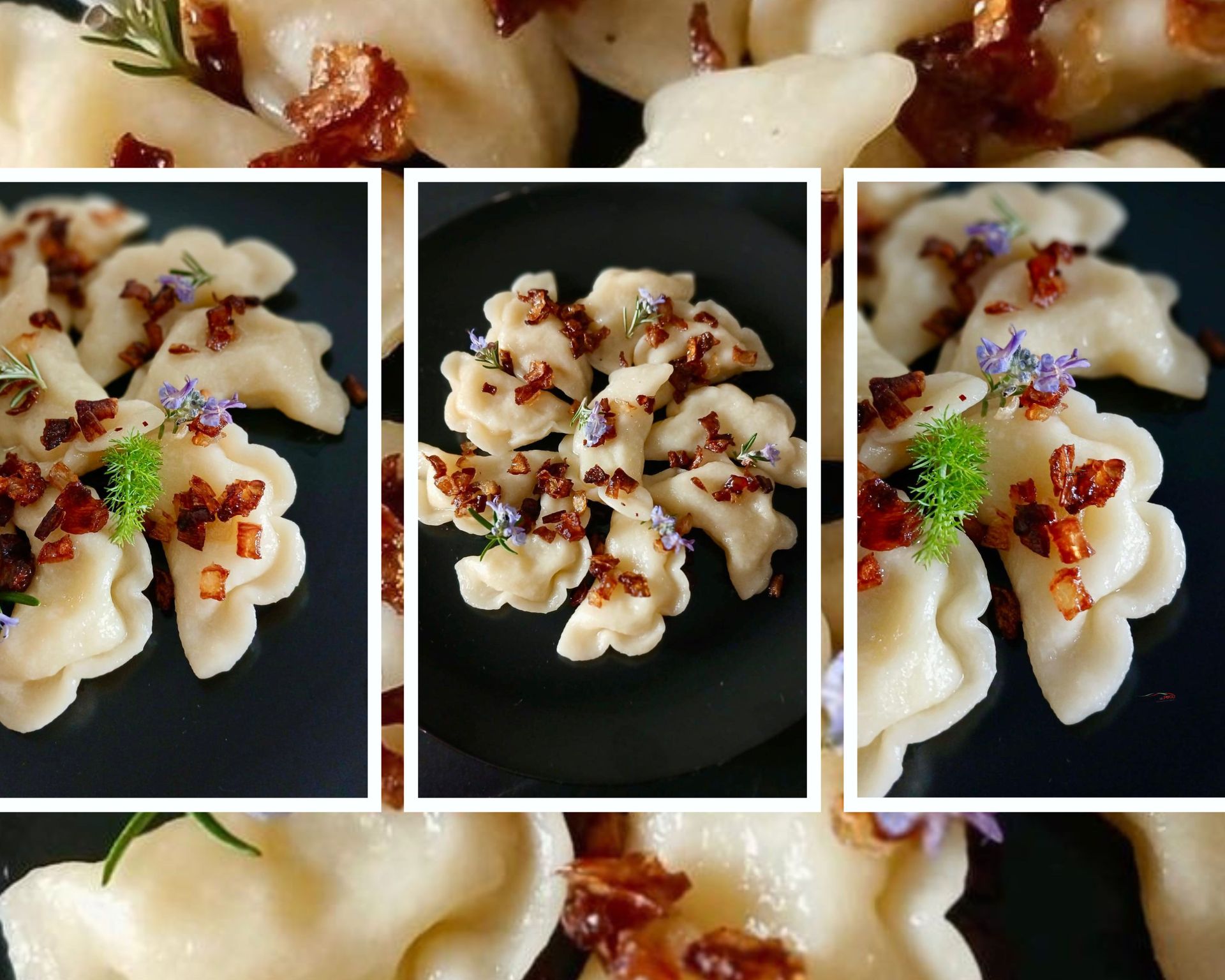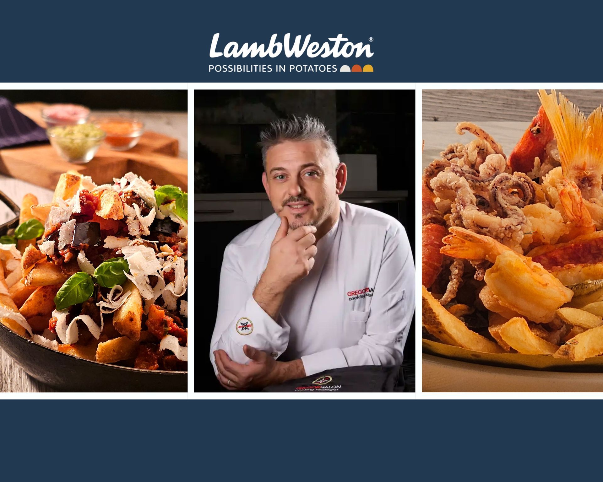 Amo creare illusioni visive che sorprendano, senza mai dimenticare il gusto. Il mio “Finto Fungo Gourmet” nasce da questo principio: un gioco tra terra, mare e umami, dove ogni elemento racconta una storia e stimola tutti i sensi . Immaginate un fungo perfetto sul vostro piatto: lo stelo è dorato e leggermente croccante, la cappella nasconde un cuore di mare e latticino, il prato è verde e vellutato, e il terriccio profuma di tartufo nero. Un piccolo capolavoro di tecnica e poesia gastronomica. Ingredienti (4 porzioni) Stelo di patata 2 patate a pasta gialla grandi Burro chiarificato q.b. Sale fino Cappella di gambero 4 gamberi imperiali crudi, abbattuti 120 g di mozzarella di bufala ben scolata Salsa di soia per lucidare Prato di asparagi 1 mazzetto di asparagi verdi Olio extravergine di oliva Sale Terriccio al tartufo Tartufo nero fresco grattugiato Procedimento 1. Stelo di patata Pelate le patate e ricavate dei cilindri regolari, simili a gambi di fungo. Lessatele in acqua salata partendo da freddo fino a cottura al dente. Raffreddatele, asciugatele bene e passatele in burro chiarificato caldo (160–170°C) fino a doratura uniforme. Concludete con una leggera flambatura al cannello per ottenere un effetto corteccia leggermente caramellizzato. 2. Cappella di gambero Pulite i gamberi mantenendo la polpa integra. Apriteli delicatamente a libro e batteteli tra due fogli di carta forno fino a ottenere una forma tondeggiante. Inserite al centro una quenelle di mozzarella di bufala lavorata al coltello, richiudete i gamberi e date loro una forma bombata. Lucidate la superficie con un velo di salsa di soia per profondità aromatica e brillantezza. 3. Prato di asparagi Sbollentate gli asparagi in acqua salata e raffreddateli in acqua e ghiaccio per preservare il colore. Frullateli con poco olio extravergine di oliva e un pizzico di sale fino a ottenere una crema liscia e intensa. Setacciate per una texture vellutata e uniforme. 4. Terriccio al tartufo Grattugiate il tartufo nero fresco per simulare il terriccio. Potete anche essiccare leggermente parte del tartufo per ottenere una texture più asciutta e croccante, che regala un contrasto interessante al palato. Impiattamento e presentazione Stendete la crema di asparagi a specchio o in un disegno irregolare a imitazione del prato. Posizionate lo stelo di patata, quindi adagiate sopra la cappella di gambero, creando il finto fungo. Completate con il tartufo grattugiato alla base per ricreare il terriccio e aggiungere eleganza olfattiva. Note del Chef e Consigli Professionali Per una cottura perfetta dello stelo, assicuratevi che le patate siano cotte ma ancora compatte, così manterranno la forma durante la doratura. La lucidatura con salsa di soia non solo dona brillantezza, ma esalta il gusto umami del gambero senza coprirne la delicatezza. La crema di asparagi può essere preparata in anticipo e conservata in frigorifero per qualche ora, mantenendo freschezza e colore. Il tartufo nero fresco è l’elemento finale che trasforma il piatto in un’esperienza gourmet: grattugiatelo solo al momento di servire per conservare profumo e intensità. Con questo piatto, il mio obiettivo è sorprendere e deliziare: ogni forchettata racconta la terra, il mare e il cielo della cucina, in un piccolo gesto artistico che unisce tecnica, equilibrio e creatività.